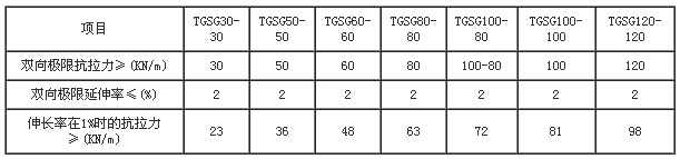高強鋼塑雙向土工格柵的性能指標(biāo)