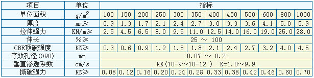 短纖土工布指標(biāo)(GB/T17638-1998)