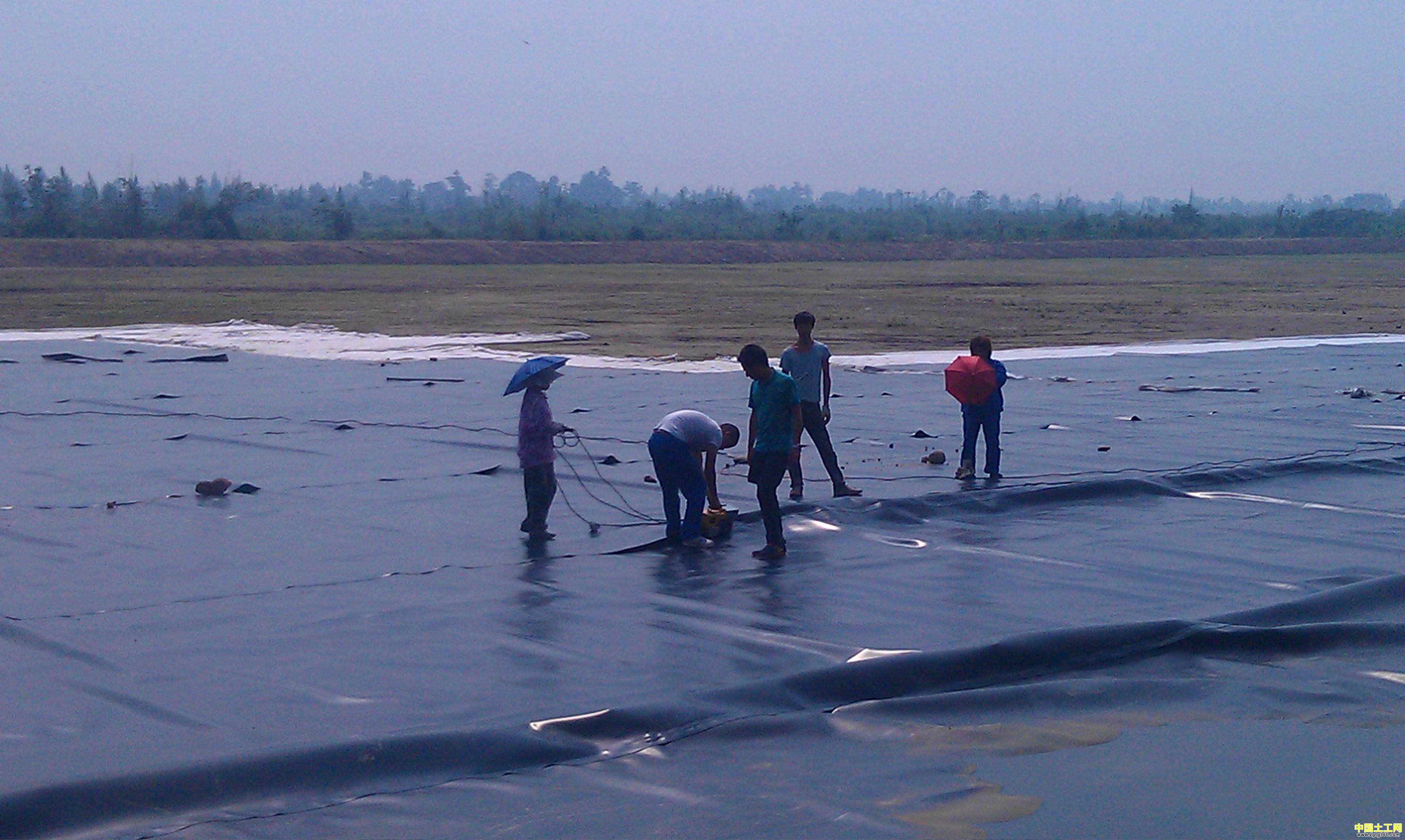 4、在進(jìn)行鋪設(shè)的時候,土工膜不要拉的太緊了,在兩端埋在土體的部分成波紋狀比較好,特別是在與剛性的材料進(jìn)行錨固時候,要有一定的伸縮量。