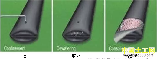 脫水:清潔達標的水滲入管袋,超過 99%固體顆粒被存留在土工管袋中