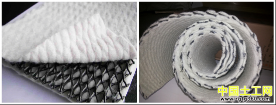 我是一種新型的土工合成材料,我的組成結(jié)構(gòu)是一個(gè)三維的土工網(wǎng)芯,兩面都粘有針刺穿孔無(wú)紡?fù)凉た椢铩R驗(yàn)榻M合了土工布(反濾作用)和土工網(wǎng)(排水和加筋保護(hù)作用),所以我可以提供完整的“反濾--排水--保護(hù)”功效。